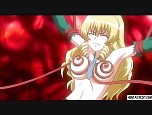 金髪ロングのスレンダー美人のお姉さんが全身触手まみれで強引に犯されて性奴隷、肉便器にされてる様子